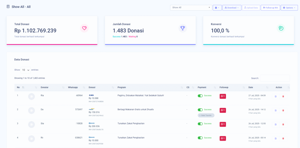Pokoknya, semuanya udah dibikin simpel dan gampang dipakai, jadi kamu bisa lebih fokus ke hal-hal penting — kayak bangun relasi sama donatur dan bikin dampak yang lebih besar.